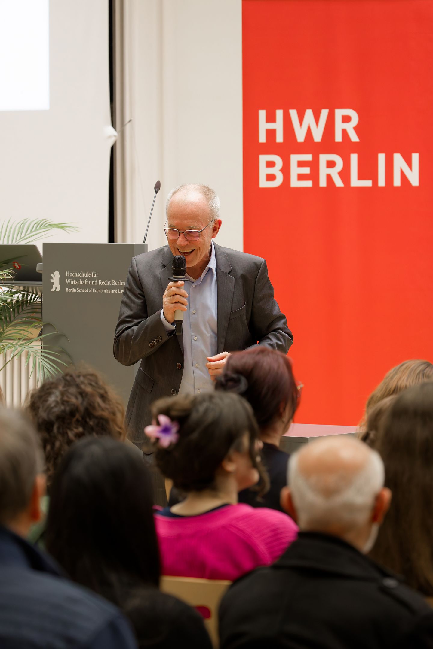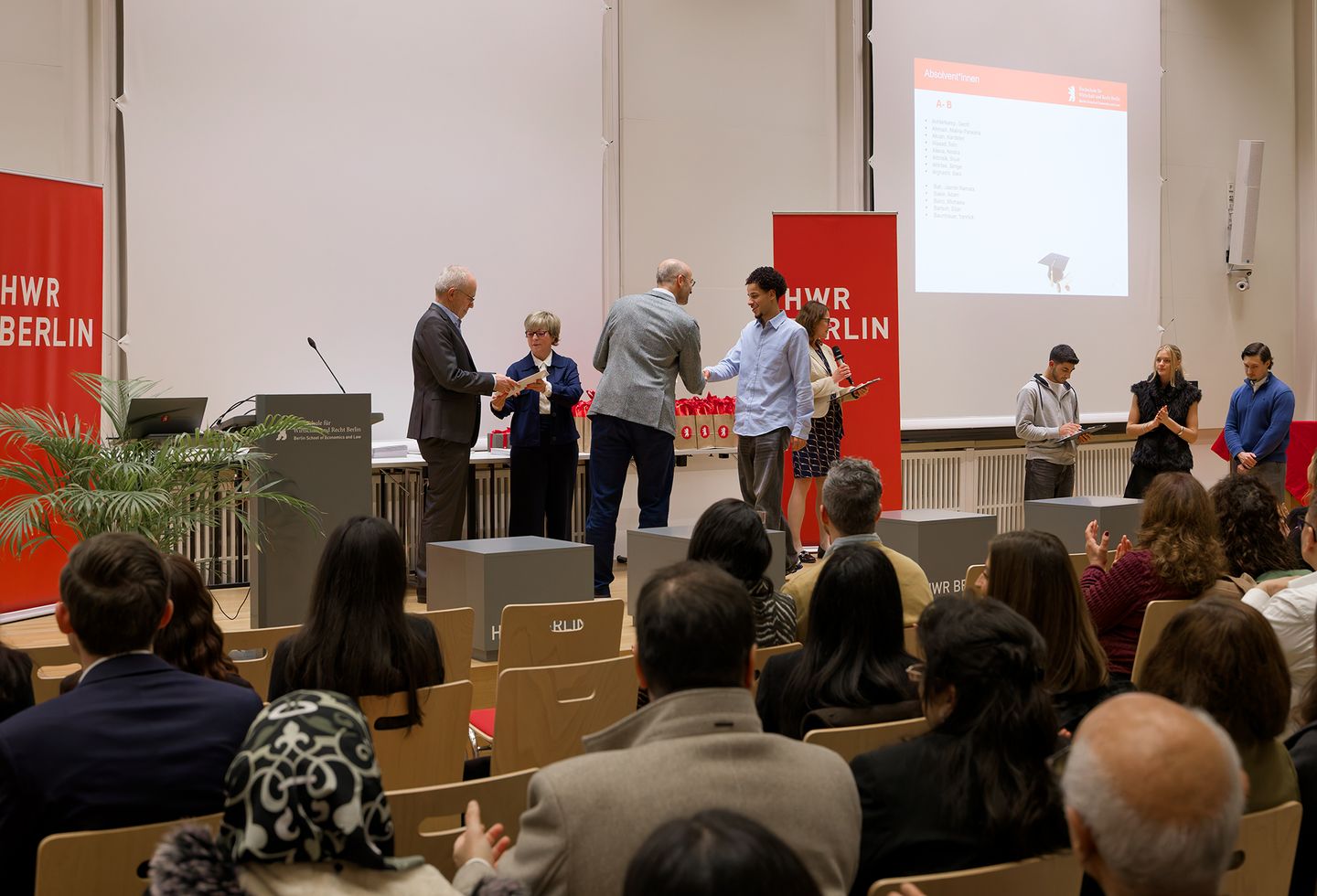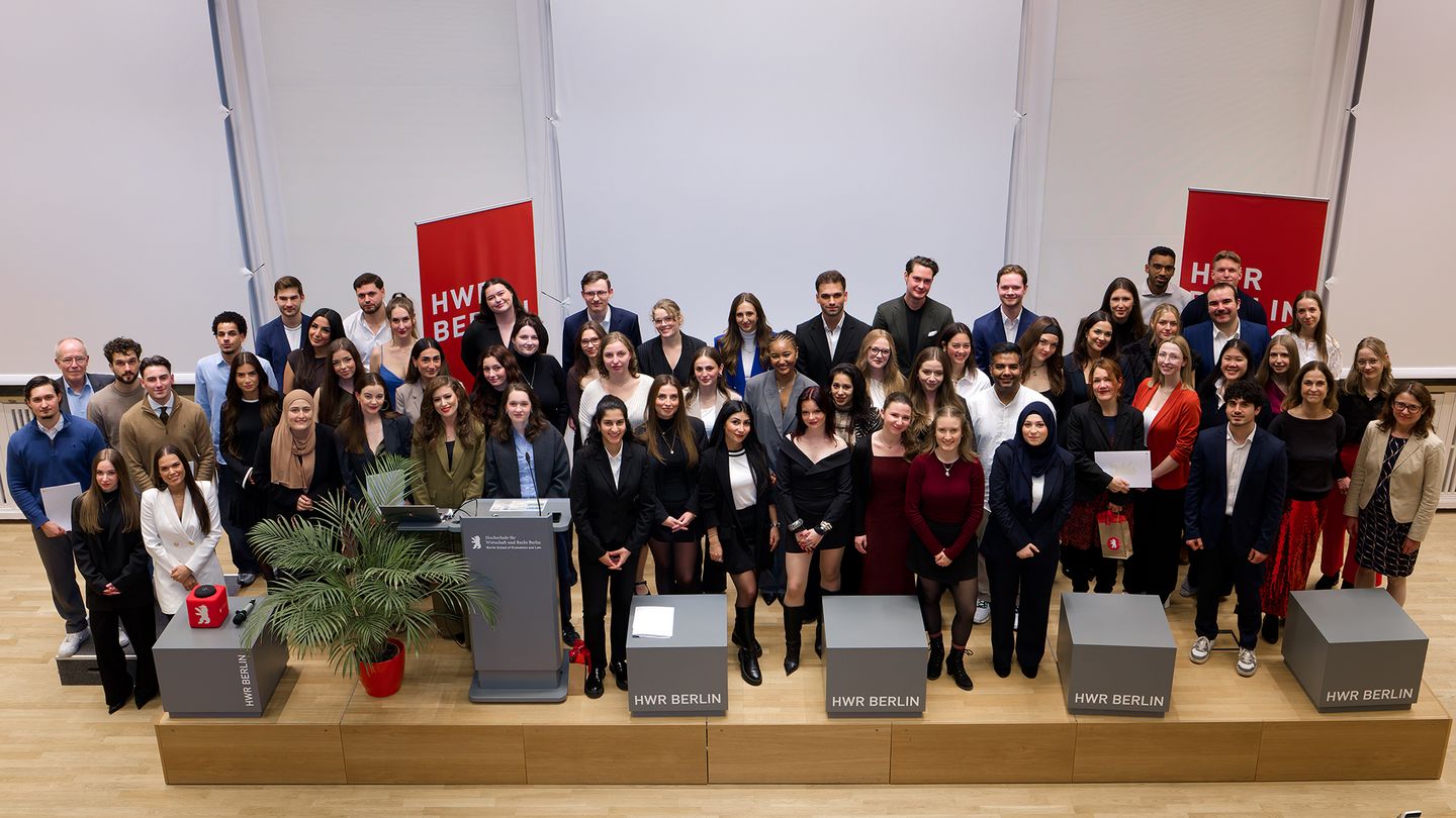 Die Hochschule prämierte die besten Abschlussarbeiten im Bereich Betriebswirtschaftslehre und würdigte damit herausragende wissenschaftliche Leistungen. Anschließend zeichnete die HWR Berlin die Jahrgangsbesten aus, deren exzellente Studienleistungen im gesamten Studienverlauf besondere Anerkennung fanden.
