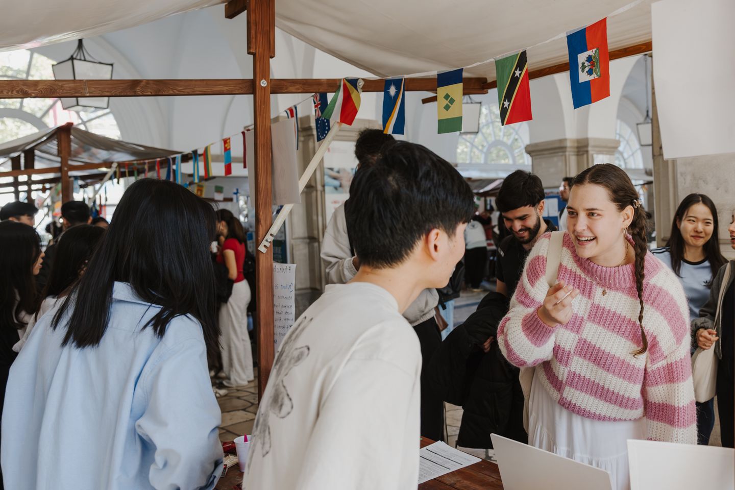 Die Marktstände im Foyer von Haus B am 13. dienten als Präsentation einiger Universitäten, aus denen die Studentinnen und Studenten für ihr Sommersemester 2026 oder ihr Auslandsjahr wählen können. Die Austauschstudentinnen und -studenten stellten ihre Heimatuniversitäten an den Ständen mit Bildern, Wissenswertem, traditionellen Snacks und guten Gesprächen vor. In diesem Jahr gab es eine Abstimmung über den besten Stand, und obwohl es viele tolle Stände mit viel Kreativität und Interaktion gab, gewann Argentinien den Preis. Herzlichen Glückwunsch auch an unseren Zweitplatzierten und die Ein-Mann-Show aus Japan!