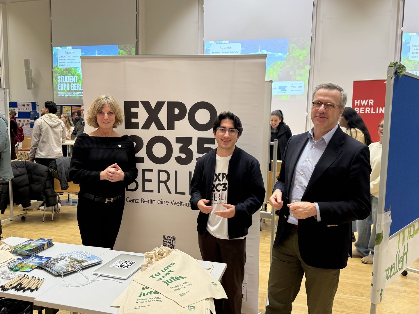 HWR-Präsident Prof. Dr. Jens Hermsdorf begrüßt das Engagement und besuchte interessiert die Veranstaltung: „Die Student EXPO zeigt beispielhaft, was möglich wird, wenn Studierende und Lehrbeauftragte gemeinsam Verantwortung übernehmen. Hier entstehen wertvolle Impulse für die Stadtgesellschaft – und für die Ausbildung unserer Studierenden.“