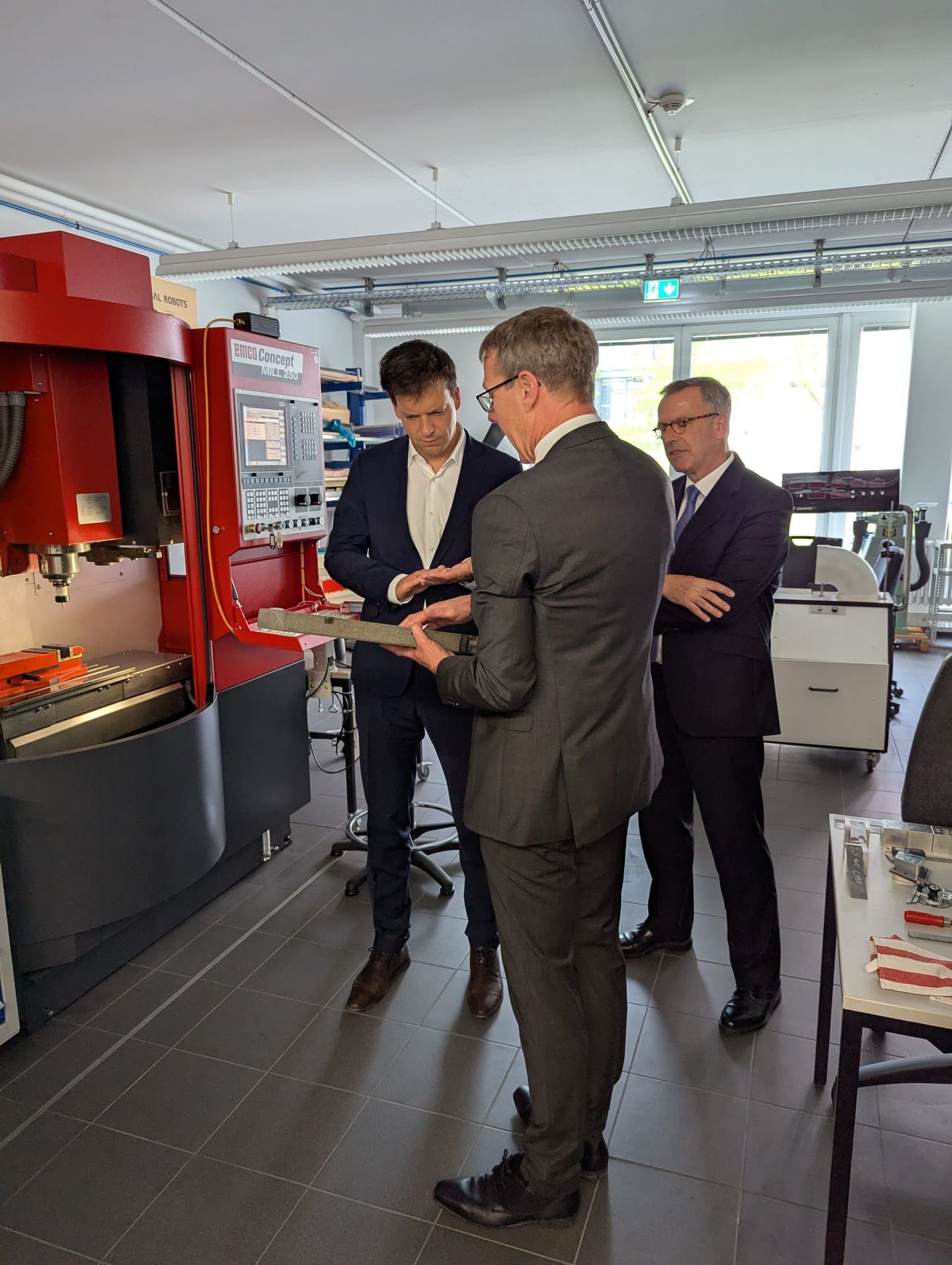 Abgerundet wurde der Besuch durch eine praxisnahe Präsentation im Maschinenbaulabor von Prof. Dr.-Ing. Alexander Steinmann, die den besonderen Anwendungsbezug der Forschung an der HWR Berlin verdeutlichte.