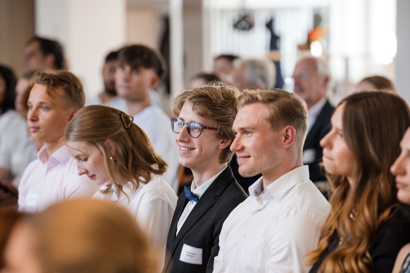 In der anschließenden Vorstellungsrunde der Stipendiat:innen erlebten die Gäste der Feier viele weitere beeindruckende Geschichten von Studierenden, jungen engagierten Menschen, biografischen Wendungen und Entwicklungen. Dieses Jahr fielen besonders oft die Wörter Erstakademiker:in und Digitalisierung der Verwaltung – ein Feld, das einige der Stipendiat:innen gern aktiv mit vorantreiben möchten! Auch mit sportlichen Höchstleistungen imponierten einzelne Stipendiat:innen, so hat sich Elisabeth, bei den Weltmeisterschaften im Synchroneiskunstlauf unter den 10 Besten platziert und sich nun entschlossen mit gerade mal 18 Jahren diese Karriere auf dem Höhepunkt zu beenden, um sich dem Studium zu widmen. Lukas hat uns im Mai bei der Weltmeisterschaft in China in der Leichtathletik vertreten. Das Stipendium ermöglicht ihm mehr Freiheiten für sein anspruchsvolles Trainingsprogramm. Auch die Gründung eines multikulturellen Sportvereins gehört zum Spektrum des Möglichen, das Stipendiat Gublan realisiert hat.