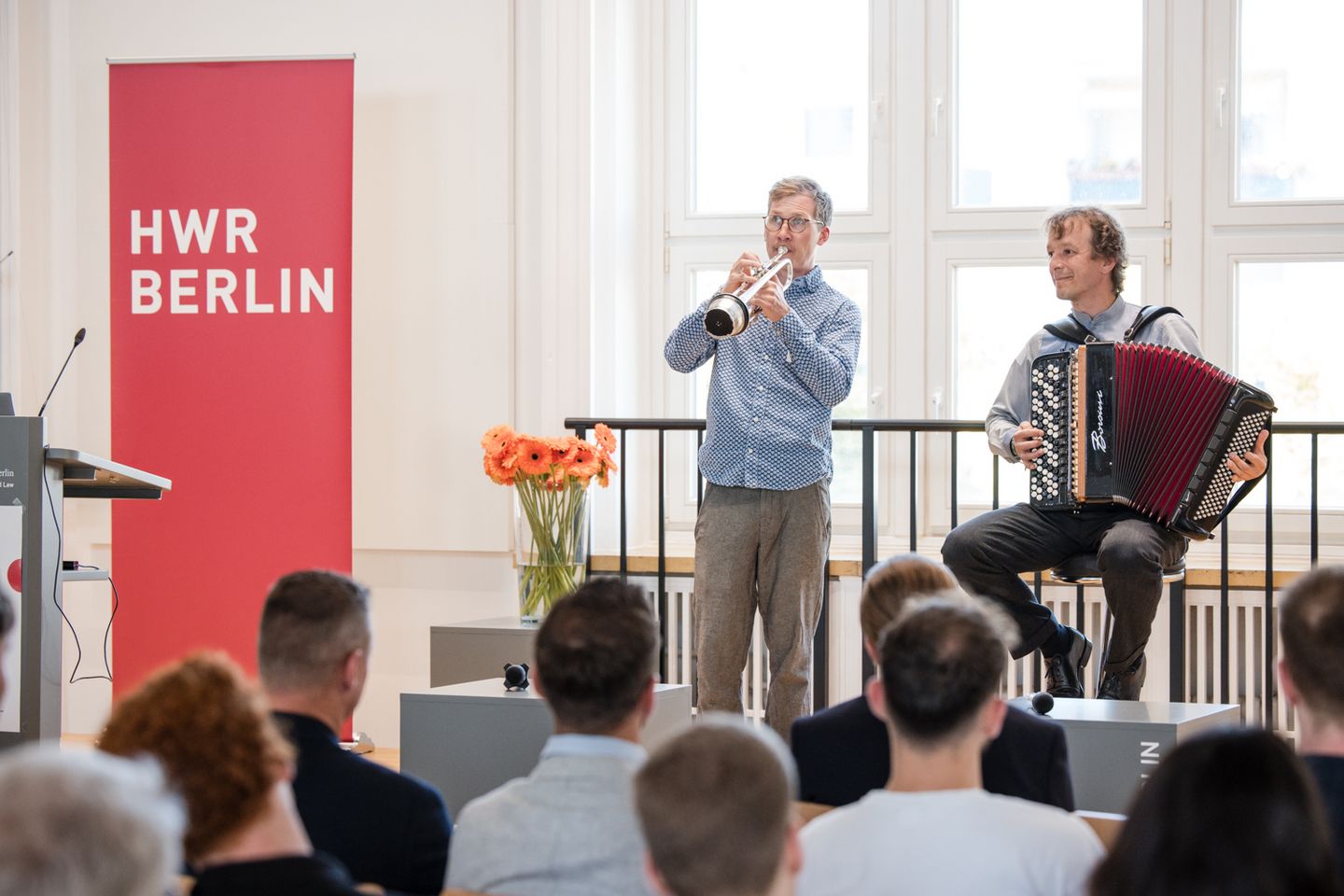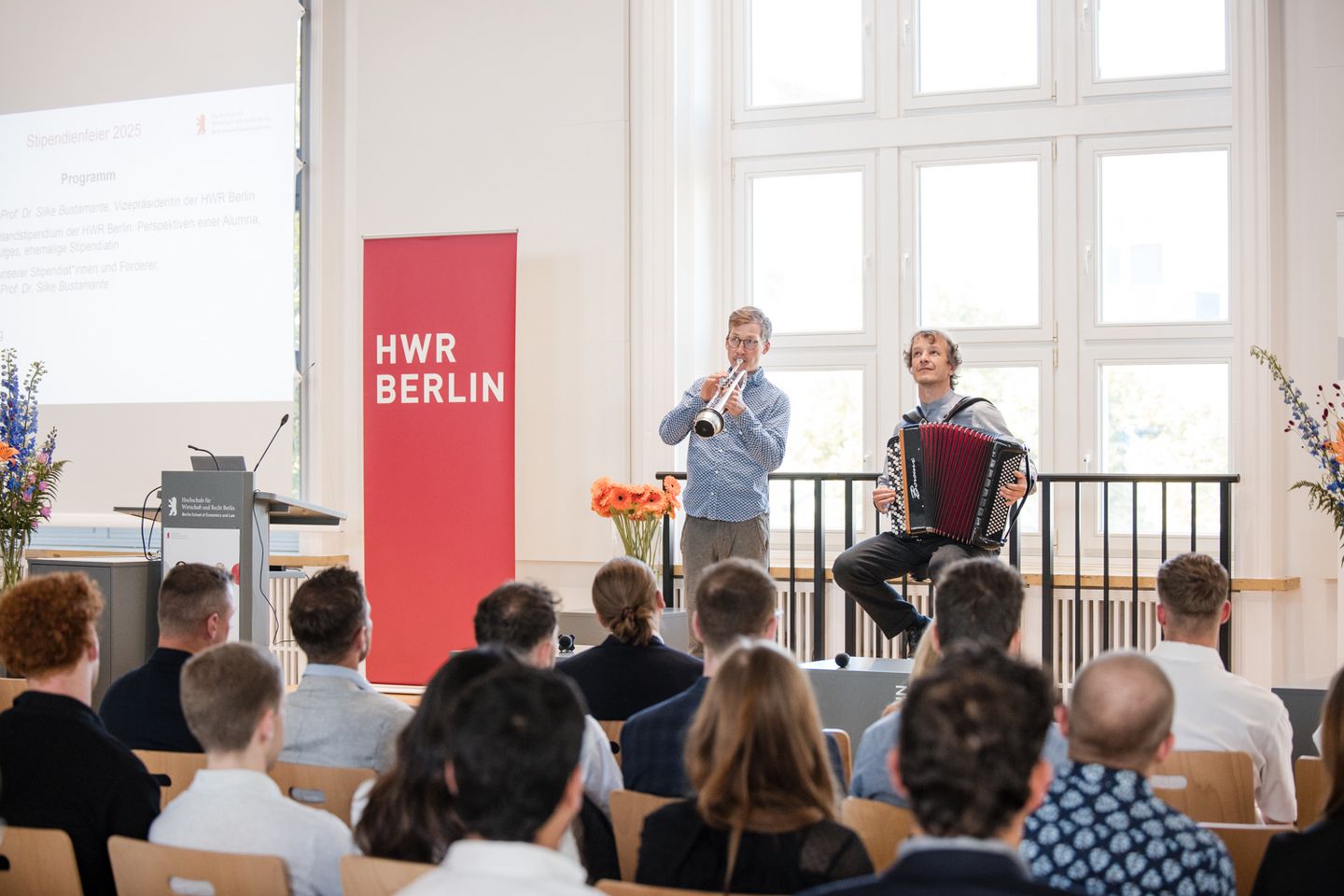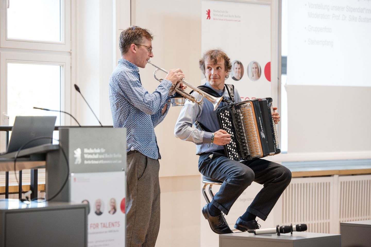Musikalisch begleitet wurde der Festakt von dem Duo Valentin Butt (Akkordeon) und Johannes Böhmer (Trompete), die uns mit vitalen Stücken von Astor Piazzolla sowie eigenen Kompositionen erfrischten.