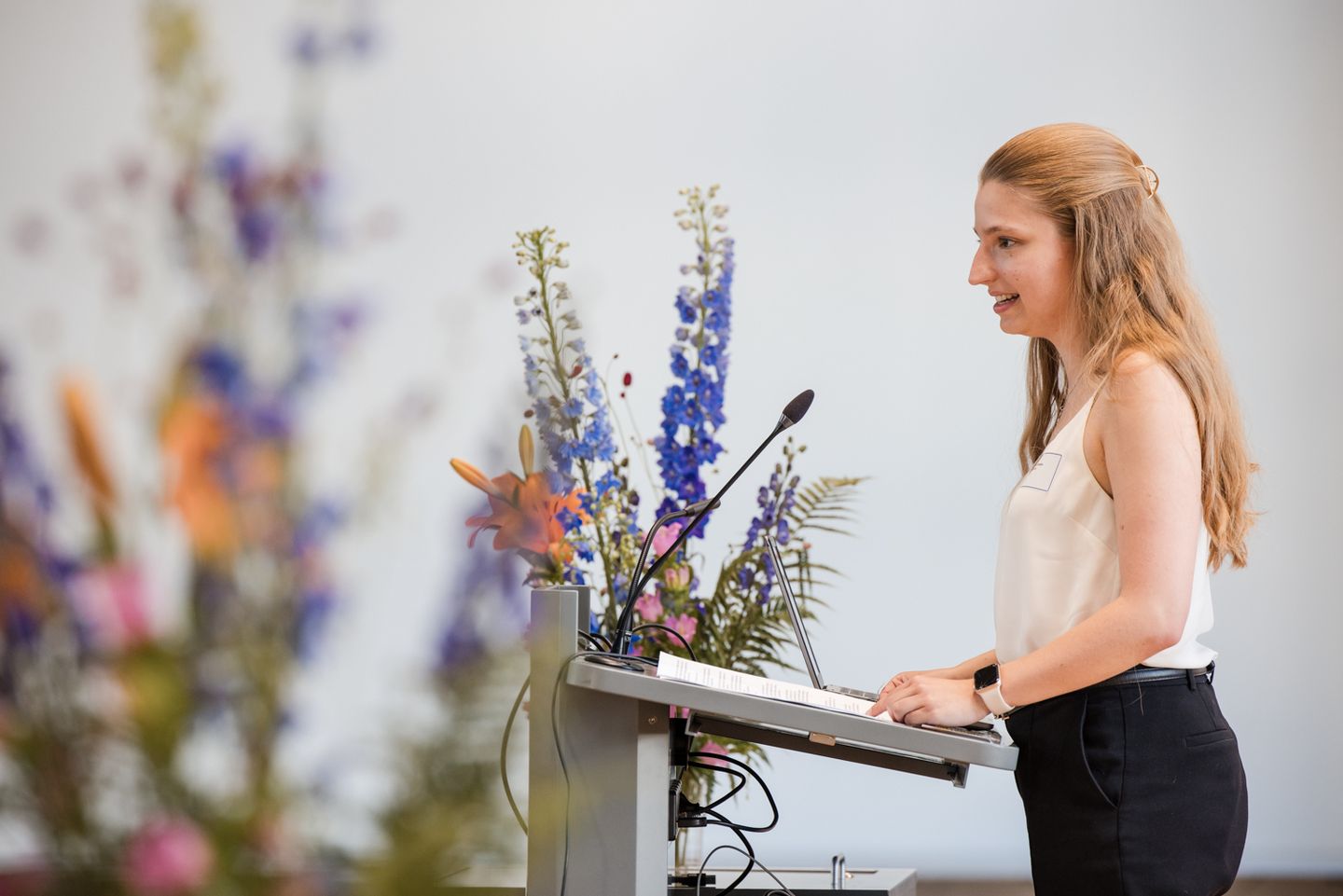 Unsere Alumna Felicitas Deutges zeichnete in ihrer Rede zu Beginn der Feier in berührenden Worten ihre Erfahrungen mit dem Stipendienprogramm nach und machte deutlich, was diese Förderung für sie bedeutet: