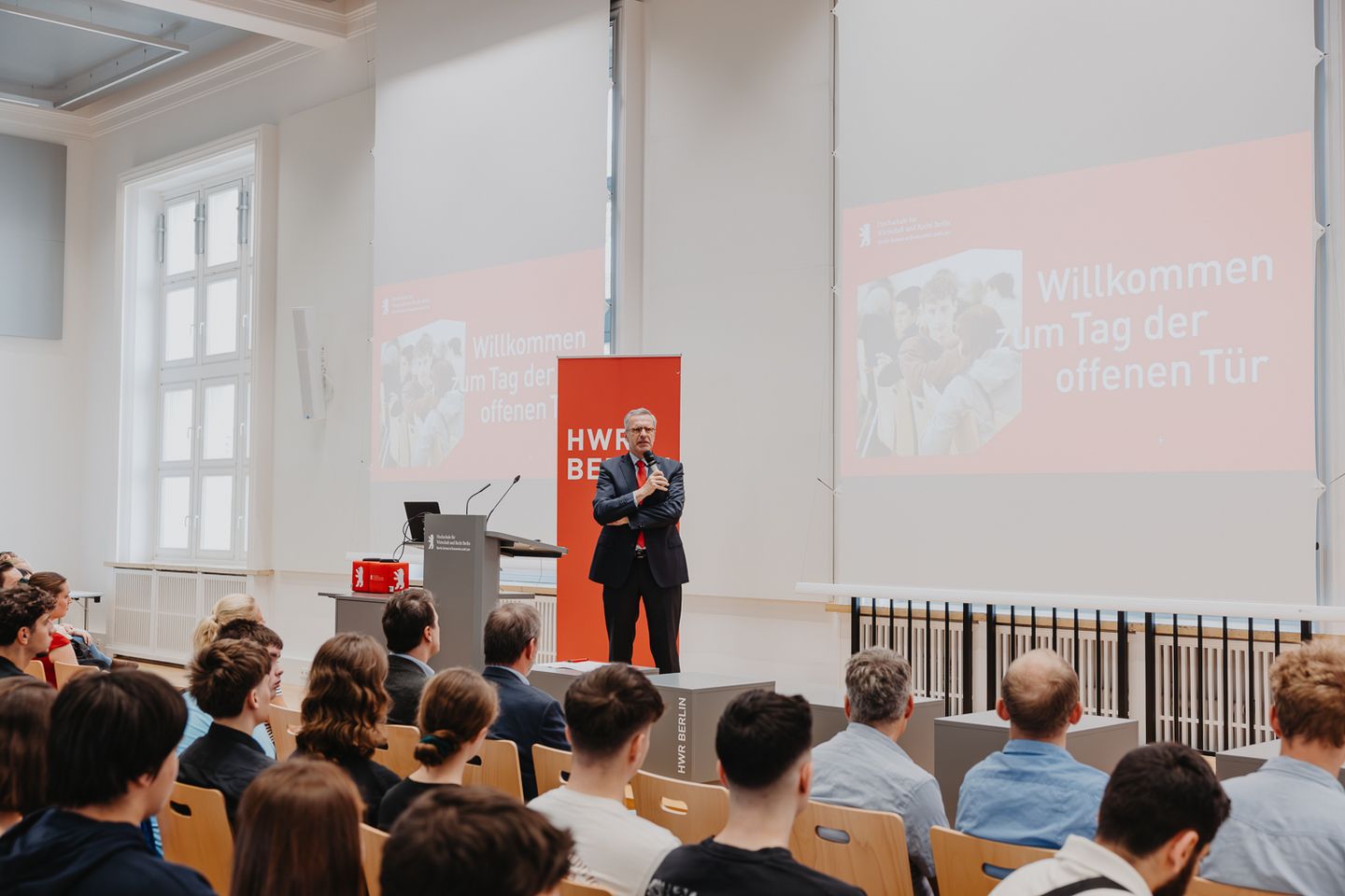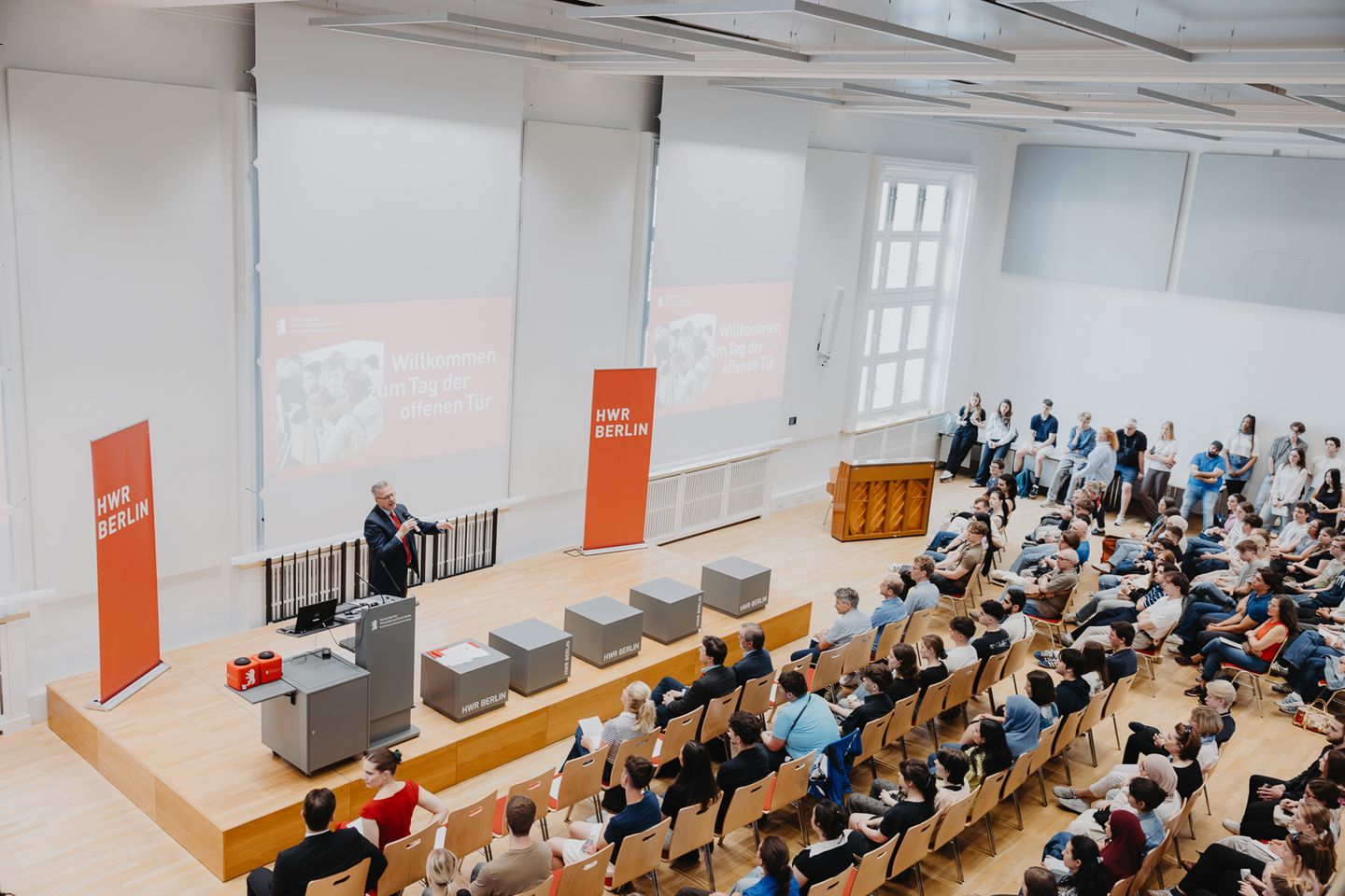Jedes Jahr im Juni, zum Auftakt in die Bewerbungsphase, öffnet die HWR Berlin ihre Türen für studieninteressierte Schüler*innen und Eltern. Denn wer ein Studium aufnehmen möchte, hat meist viele Fragen: Was kann ich an der HWR Berlin studieren? Welcher Studiengang passt zu mir? Wie stehen meine Chancen, ins Ausland zu gehen? Wie kann ich mein Studium finanzieren?