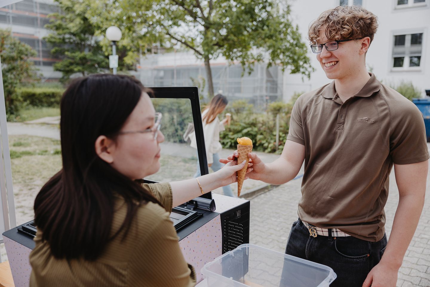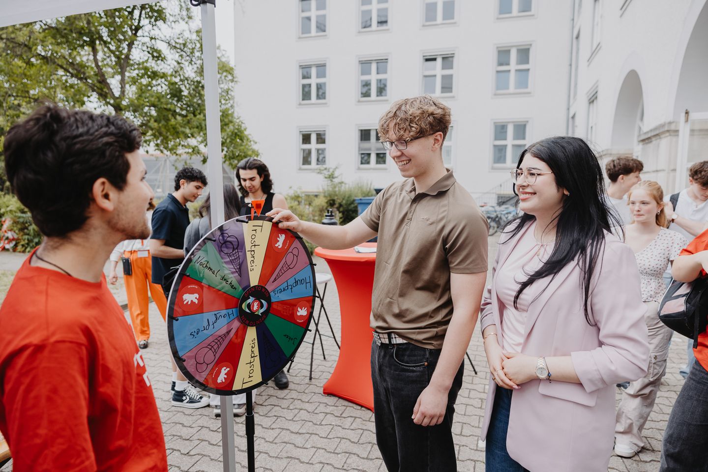 Im studentischen Café Geschmacklos wurden die Besucher*innen mit Getränken und Snacks versorgt. Und beim Glücksrad im Innenhof gab es Eis zu gewinnen.