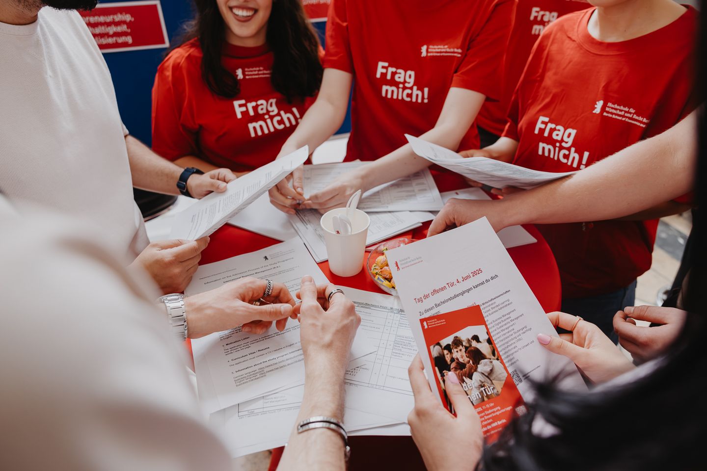 1333 Besucher*innen kamen am 4. Juni zum Tag der offenen Tür an den Campus Schöneberg, um die HWR Berlin zu entdecken und mehr über die Studienmöglichkeiten und Bewerbungsvoraussetzungen zu erfahren.