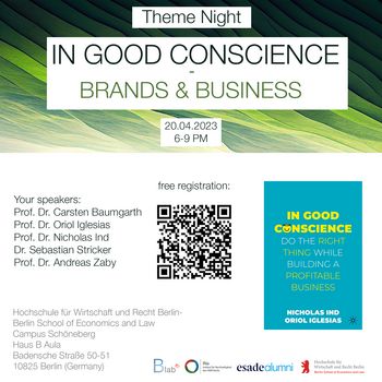 The Esade Alumni Berlin Chapter and HWR Berlin are delighted to invite you to this new session "In good conscience - Brands & Business" on the 20th of April 2023 at 6 pm.