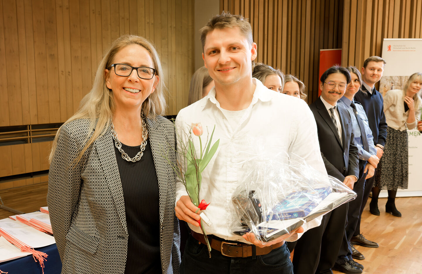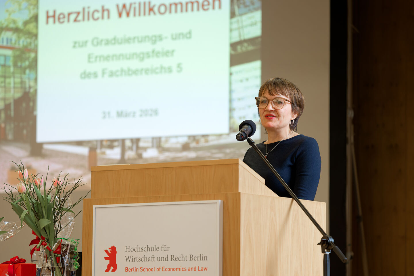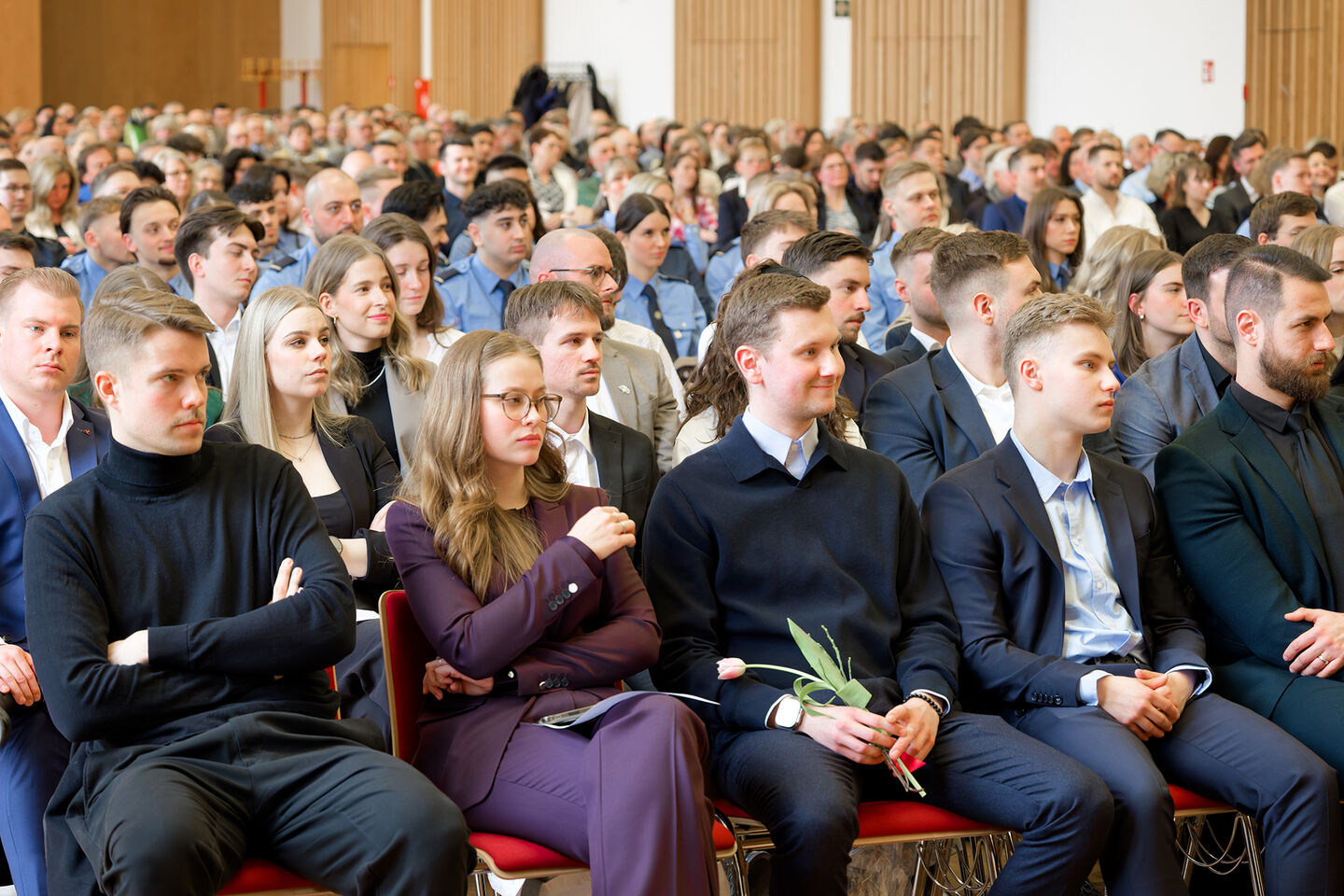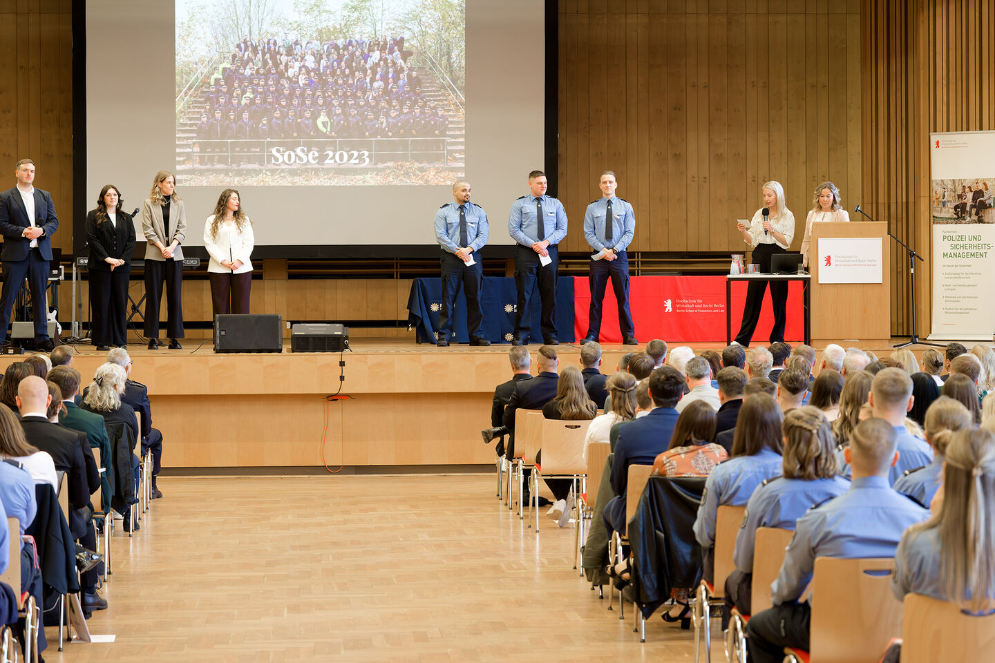 Zur Graduierungsfeier im voll besetzten Audimax der Hochschule für Wirtschaft und Recht Berlin (HWR Berlin) am Campus Lichtenberg kamen zahlreiche Gäste aus Politik, Polizei und Hochschule sowie Familienangehörige, um den Absolventinnen und Absolventen ihre Anerkennung auszusprechen und den erfolgreichen Abschluss gemeinsam zu feiern.