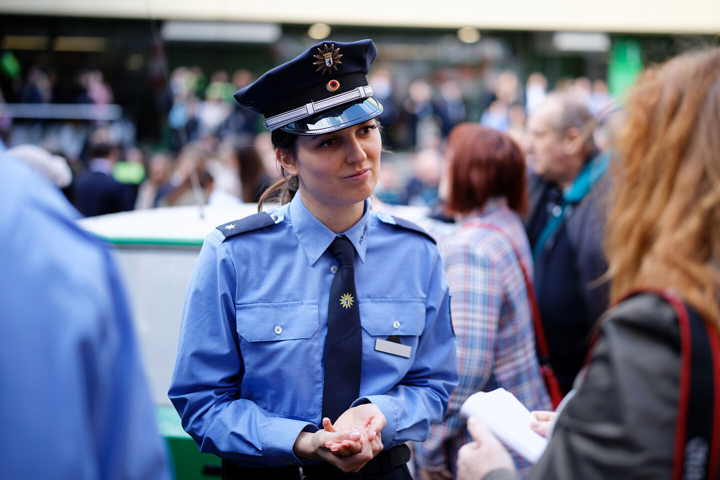 Büssings Weg zur Polizei verlief nicht geradlinig. Aufgewachsen in der Nähe von Bremen und im Reitsport zu Hause, absolvierte sie zunächst eine Ausbildung zur Veranstaltungskauffrau. Anschließend studierte sie Jura in Münster. „Ich habe aber gemerkt, dass ich keinen reinen Schreibtischjob möchte“, sagt sie. Dem Beispiel ihres Bruders folgend, entschied sie sich für die Polizei. Büssing bestand die Aufnahmeprüfungen für das Studium Gehobener Polizeivollzugsdienst in Berlin und wurde direkt angenommen. „Die Stadt ist unglaublich vielfältig und cool. Ich passe hierher.“ Und auch in den Polizeidienst: „Schon im dritten Semester waren wir im Einsatz. Ich wurde sofort gut aufgenommen und konnte eigenständig Aufgaben übernehmen.“ Ab April tritt sie ihren Dienst im Streifendienst in Köpenick an.