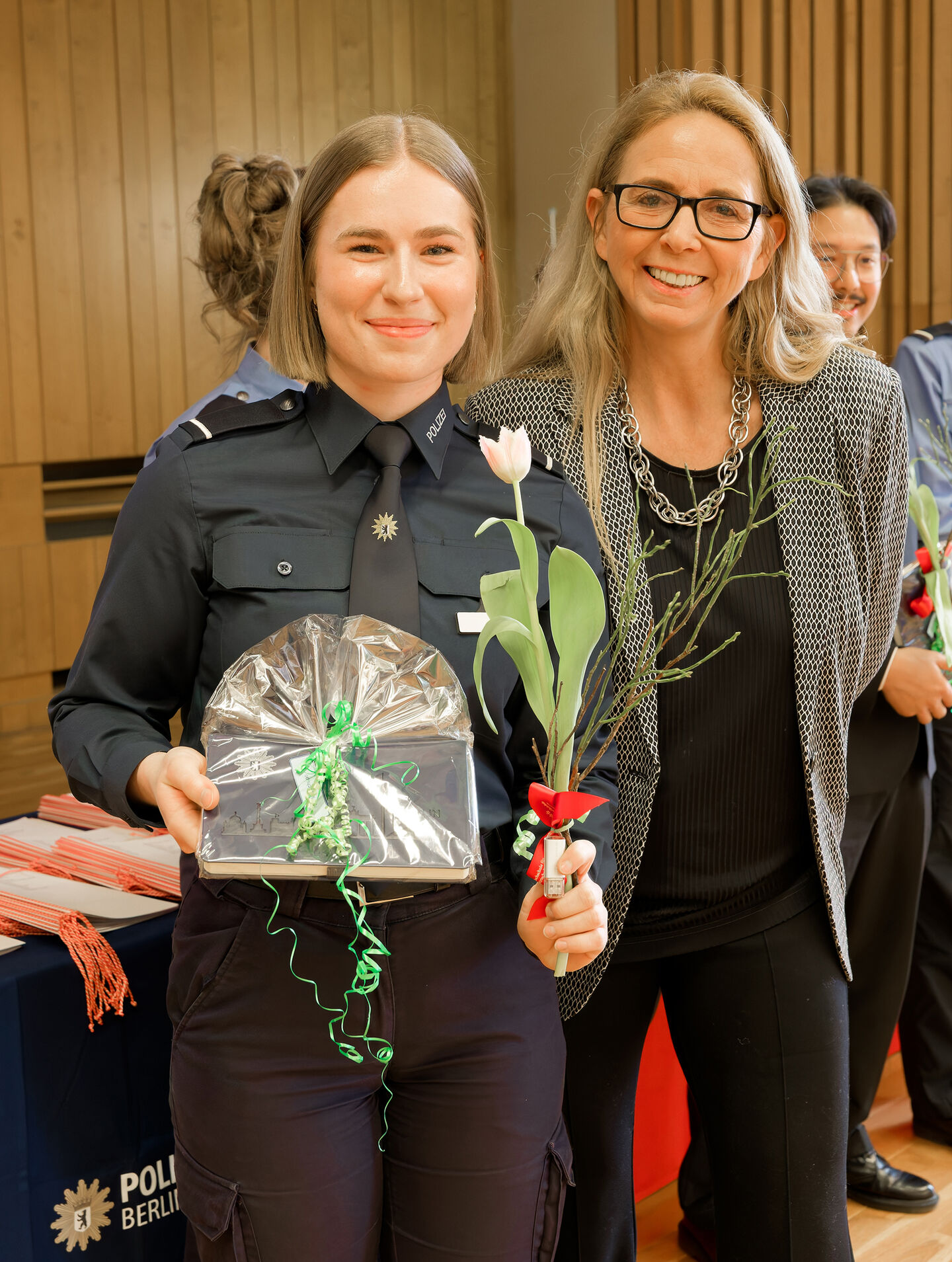 171 frisch ausgebildete Schutz- und Kriminalkommissarinnen und -kommissare sowie 13 Oberkommissar*innen mit Spezialisierung auf Wirtschafts- und Cyberkriminalität treten ihren Dienst bei der Polizei Berlin an. In ihrer Abschlussrede – ihrer „Lagemeldung“ – blickten die Absolventinnen auf drei intensive Jahre zurück: Das Studium sei fachlich, körperlich und persönlich herausfordernd gewesen. Sie hätten gelernt, dranzubleiben und durchzuhalten – „und wir haben es geschafft!“ Der Umgang mit Druck und Unsicherheit habe sie geprägt und seien sie als Jahrgang eng zusammengewachsen. Nun beginne ein Berufsleben, „in dem wir etwas leisten, was Bedeutung hat.“