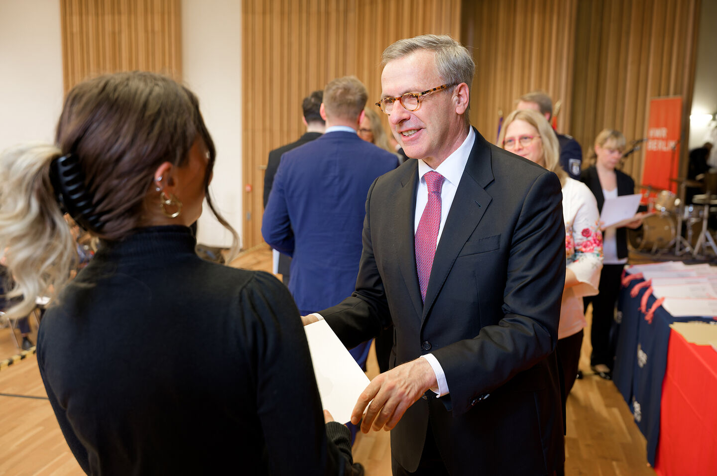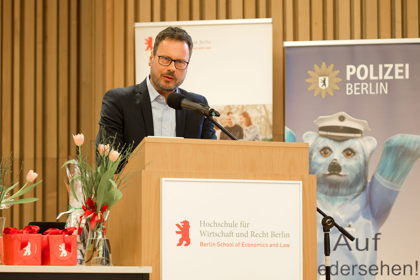 Der Präsident der HWR Berlin, Prof. Dr. Jens Hermsdorf, sprach den Absolventinnen und Absolventen großen Respekt für ihren künftigen Dienst an der Gesellschaft aus und hob dessen Bedeutung hervor: „Sie haben sich bewusst für einen Beruf entschieden, der mehr ist als eine Tätigkeit: ein Dienst an den Menschen und an unserer Demokratie.“ Damit übernehmen sie Verantwortung für Sicherheit, Freiheit und das Funktionieren des gesellschaftlichen Zusammenlebens, in einer Stadt, in der Polizeiarbeit besonders vielfältig und anspruchsvoll ist.