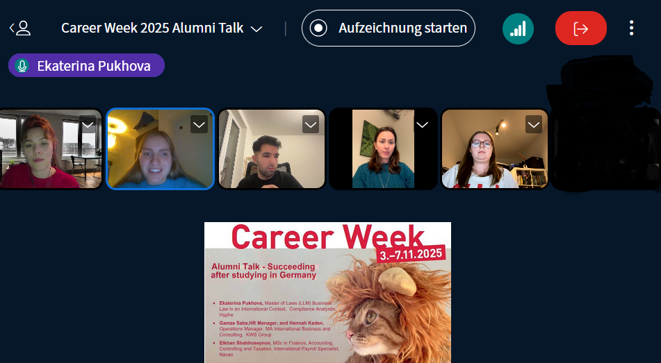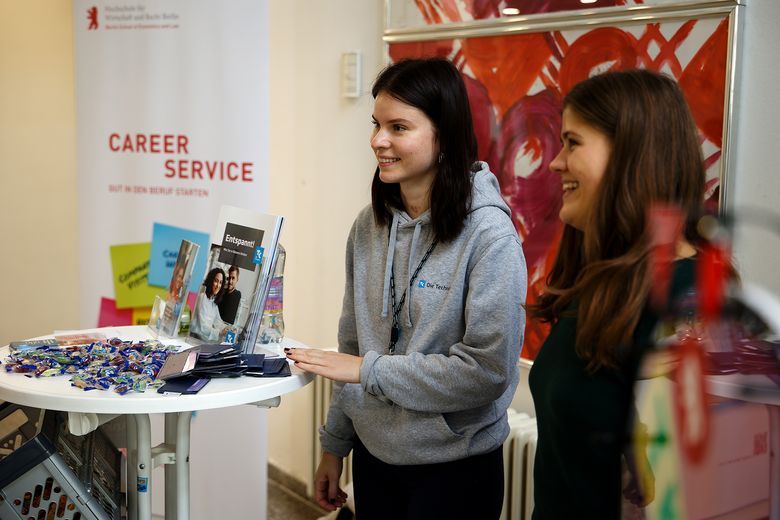 Die Woche begann mit einem internationalen Schwerpunkt. Beim International Monday informierte EURES-Beraterin Katja Klink über Jobmöglichkeiten in Berlin und der EU. Besondere Tipps gab es für internationale Studierende. Ein Alumni-Talk präsentierte erfolgreiche Karrierewege von internationalen Master-Absolvent*innen.