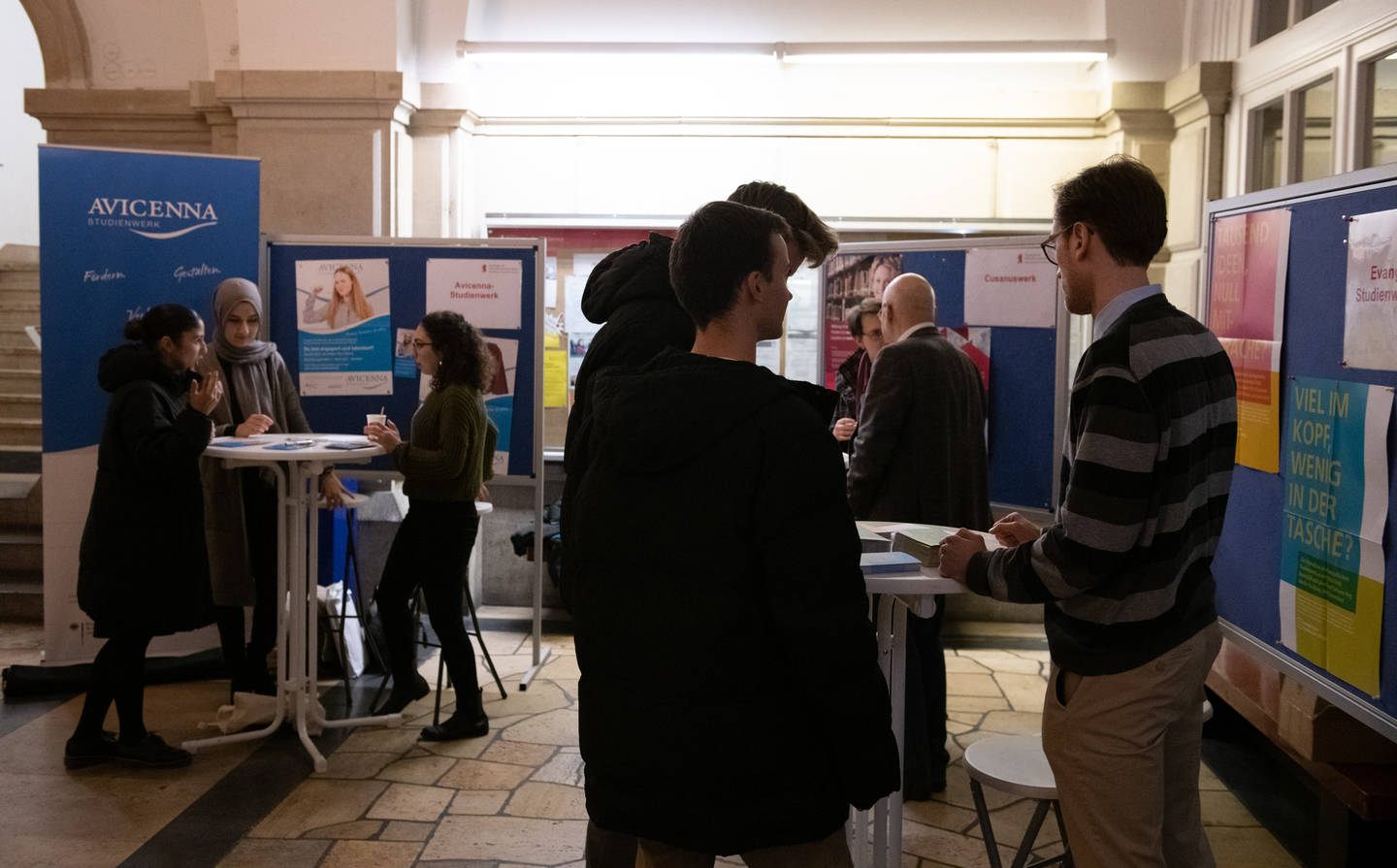 Studierende, die auf der Suche nach einem Stipendium sind, konnten sich im Rahmen einer Messe auf dem Campus Schöneberg über die unterschiedlichen Fördermöglichkeiten informieren.