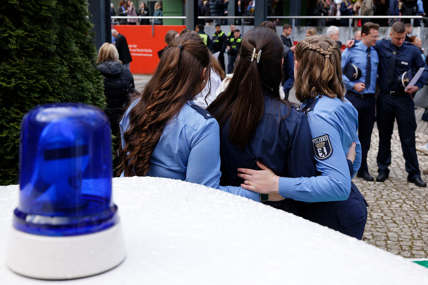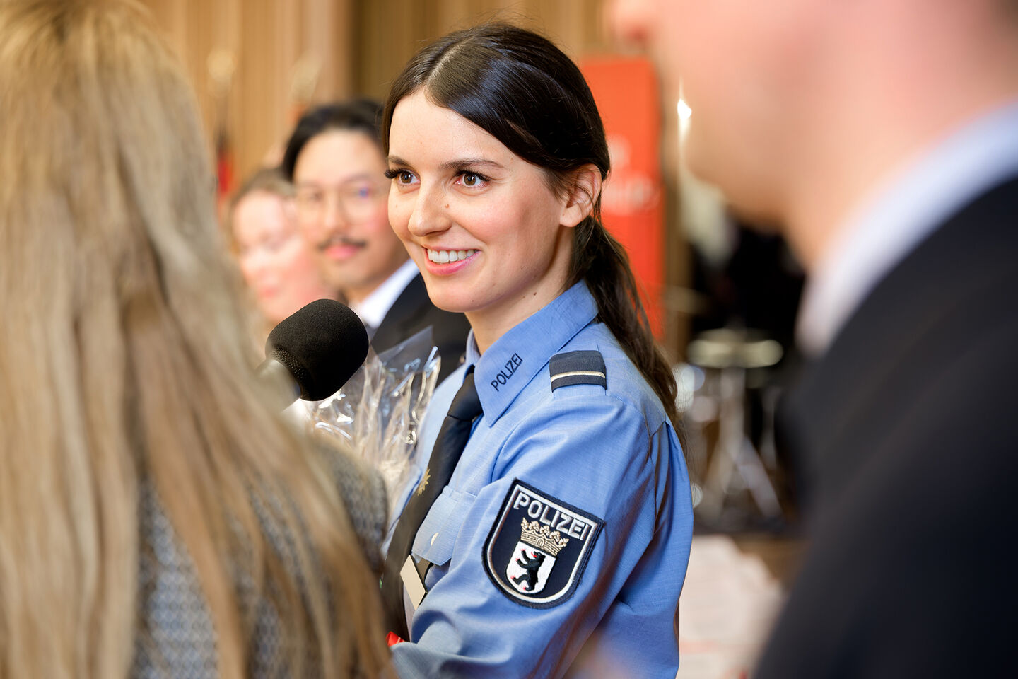 Büssings Weg zur Polizei verlief nicht geradlinig. Aufgewachsen in der Nähe von Bremen und im Reitsport zu Hause, absolvierte sie zunächst eine Ausbildung zur Veranstaltungskauffrau. Anschließend studierte sie Jura in Münster. „Ich habe aber gemerkt, dass ich keinen reinen Schreibtischjob möchte“, sagt sie. Dem Beispiel ihres Bruders folgend, entschied sie sich für die Polizei. Büssing bestand die Aufnahmeprüfungen für das Studium Gehobener Polizeivollzugsdienst in Berlin und wurde direkt angenommen. „Die Stadt ist unglaublich vielfältig und cool. Ich passe hierher.“ Und auch in den Polizeidienst: „Schon im dritten Semester waren wir im Einsatz. Ich wurde sofort gut aufgenommen und konnte eigenständig Aufgaben übernehmen.“ Ab April tritt sie ihren Dienst im Streifendienst in Köpenick an.