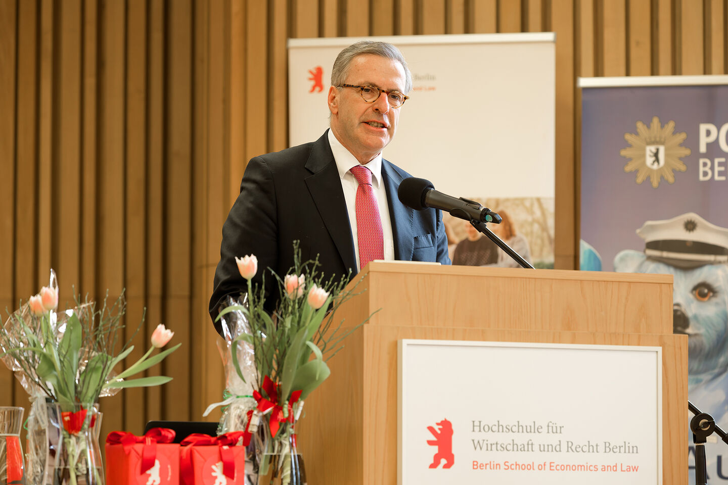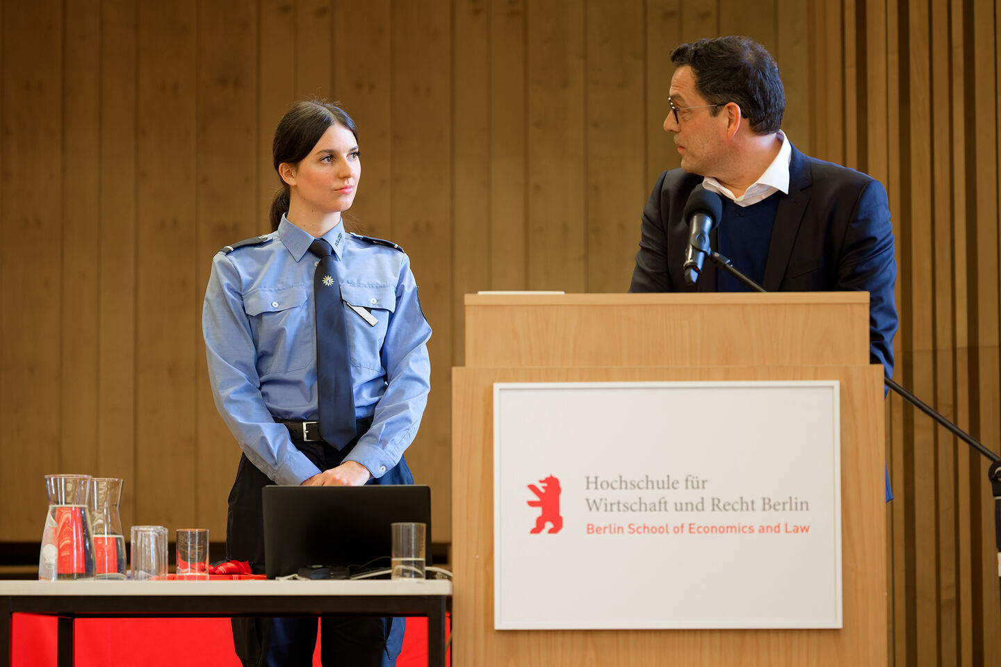 Der Präsident der HWR Berlin, Prof. Dr. Jens Hermsdorf, sprach den Absolventinnen und Absolventen großen Respekt für ihren künftigen Dienst an der Gesellschaft aus und hob dessen Bedeutung hervor: „Sie haben sich bewusst für einen Beruf entschieden, der mehr ist als eine Tätigkeit: ein Dienst an den Menschen und an unserer Demokratie.“ Damit übernehmen sie Verantwortung für Sicherheit, Freiheit und das Funktionieren des gesellschaftlichen Zusammenlebens, in einer Stadt, in der Polizeiarbeit besonders vielfältig und anspruchsvoll ist.